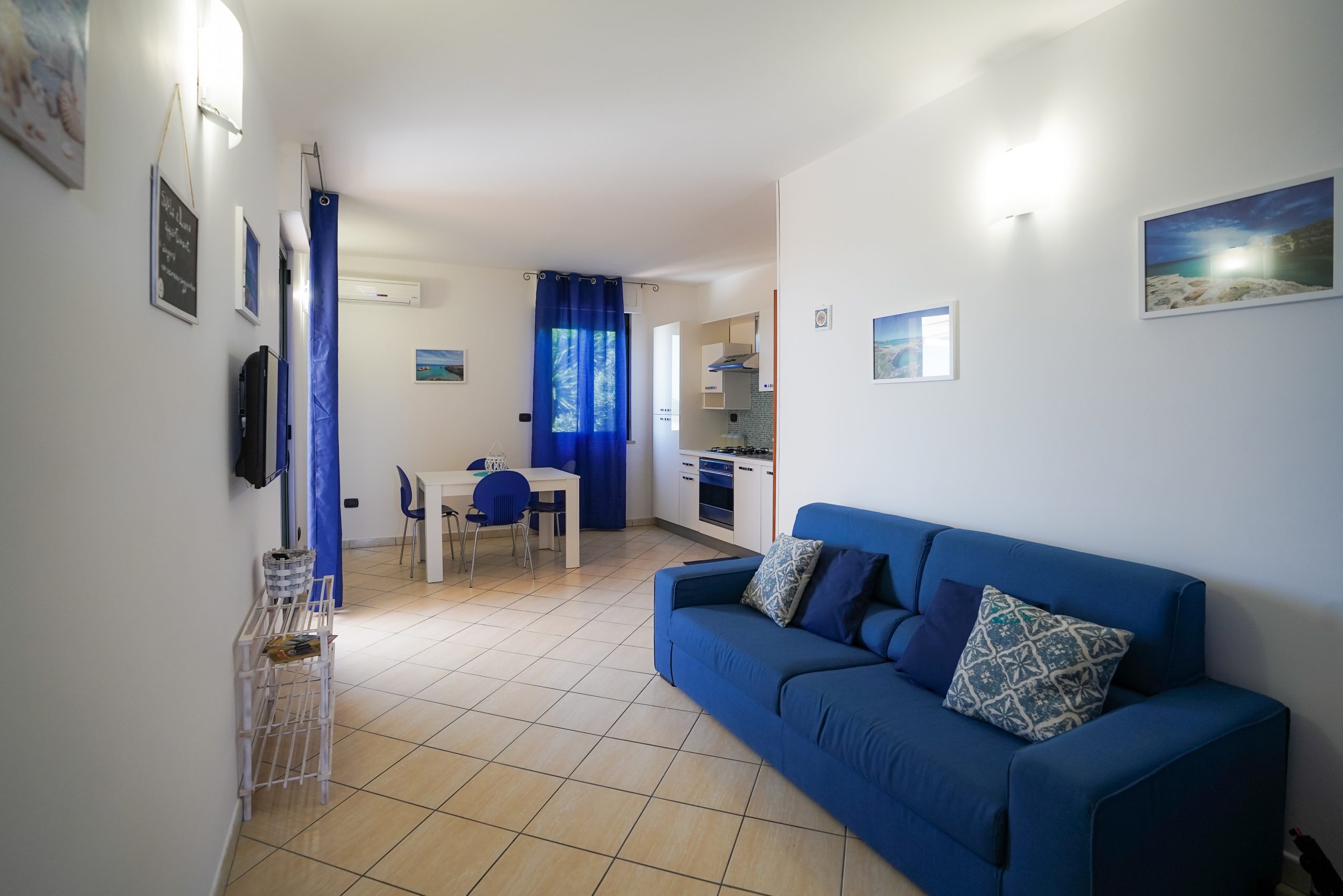 E’ composto da 1 camera da letto matrimoniale, 1 soggiorno open space con cucina e divano letto matrimoniale e 1 bagno.