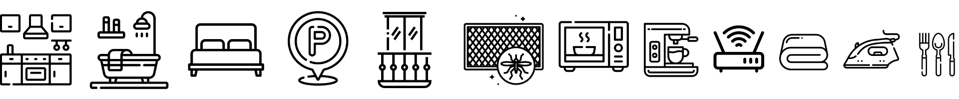 • Cucina • Microonde • Macchina del caffè • WI-FI • Aria condizionata • Zanzariere • Lavatrice • Doccia esterna • Asciugacapelli • Ferro da stiro • Possibilità di biancheria